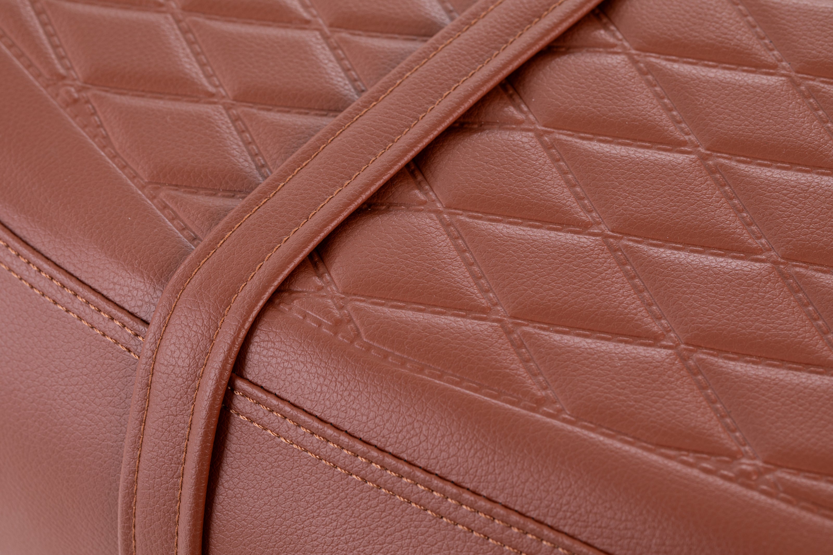 Premium tan or black leather style seat designed for relaxed everyday commuting